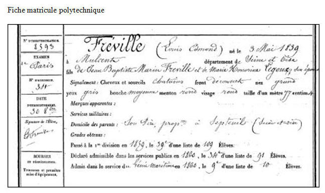 Elève de l'Ecole polytechnique le 1er novembre 1858
