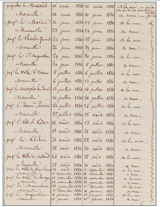 Du 1er janvier 1880 au 10 mai 1880, port Marseille