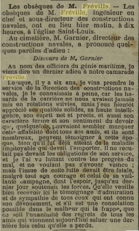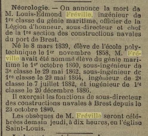 Sous ingénieur de 1ère classe le 29 mai 1866, port Brest