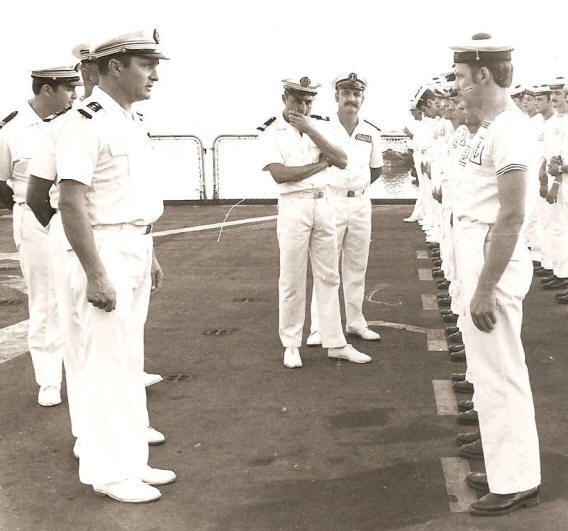 inspection traditionnelle sur le pont d'envol du BC "La Charente"