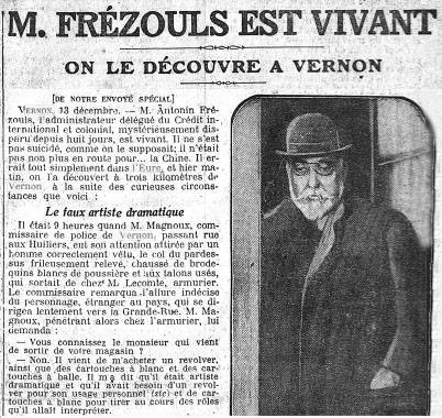 14 décembre 1920. Depuis huit jours, M. Frézouls a disparu.