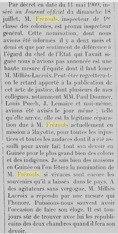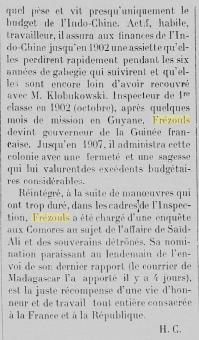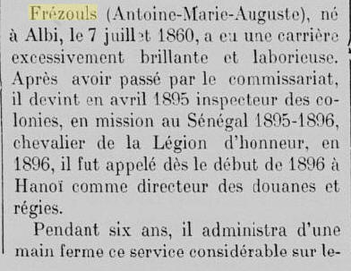 En 1895 inspection de la colonie, détaché au ministère des finances,