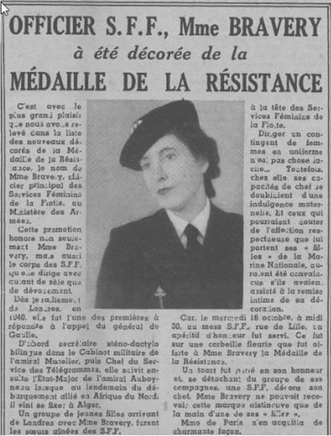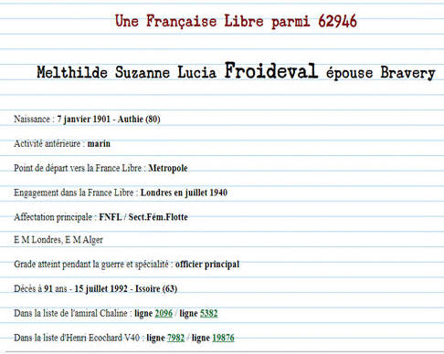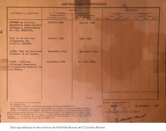 Françaises Libres. Son état de service indique qu’elle est affectée