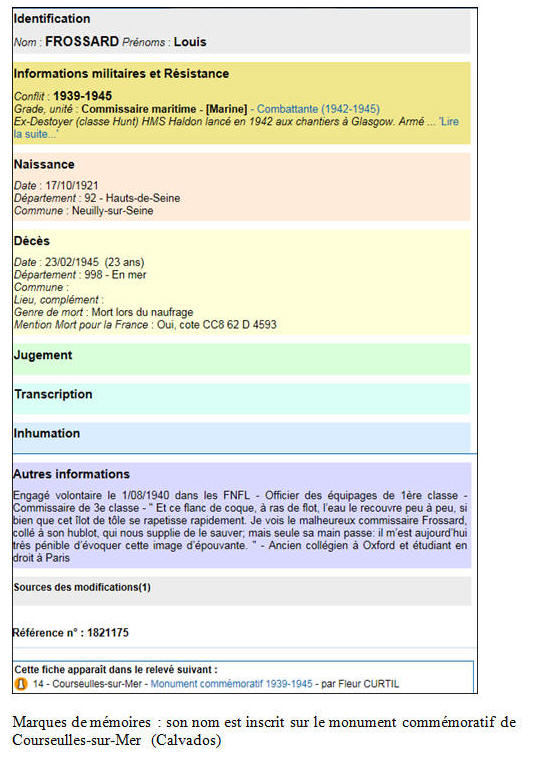 Mort pour la France le 23 février 1945 dans l’estuaire de la Humber