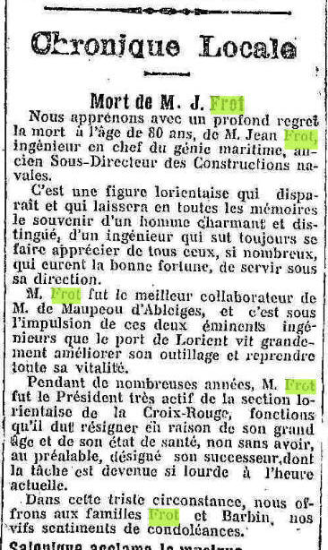 MÂCON (Haute Saône) - Décédé le 29 février 1916 à LORIENT (Morbihan)
