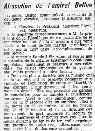 contre-torpilleur "BÉLIER", Escadre du Nord (Cdt André CATUHE-JUNCA).