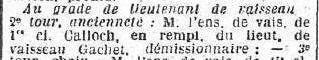Enseigne de vaisseau de 1ère classe le 7 novembre 1916.