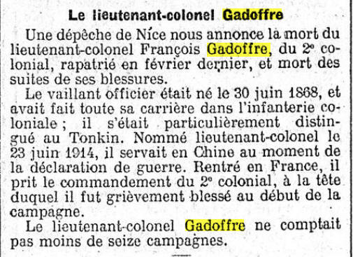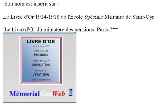 À son décès des suites de blessures de Guerre, Lieutenant-colonel au