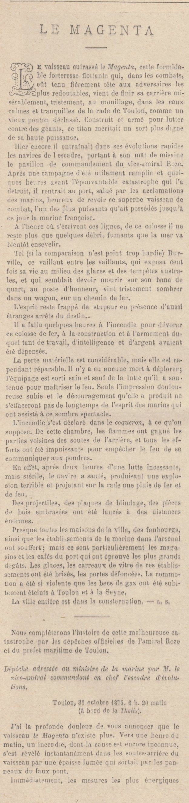 "MAGENTA", et sera acquitté en décembre 1875, par le Conseil de