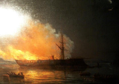 guerre à la suite de l'incendie accidentel du bâtiment en rade de