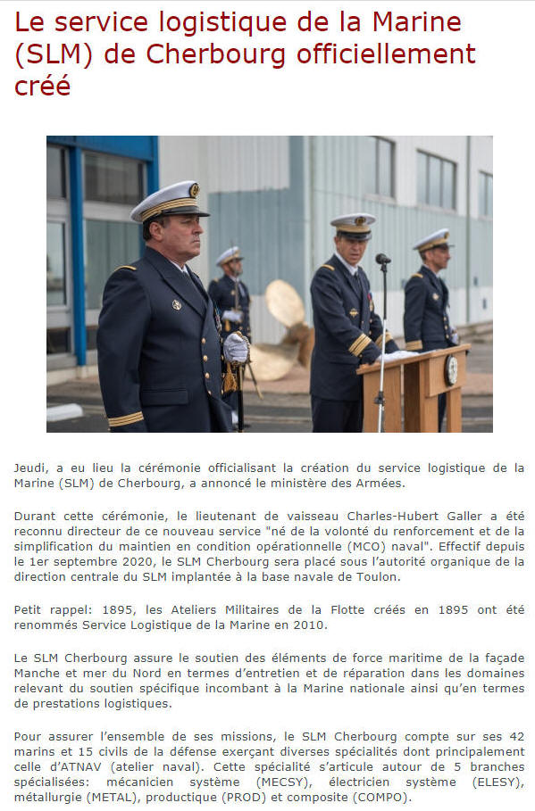 Marine de Cherbourg à compter du 1er septembre 2020.