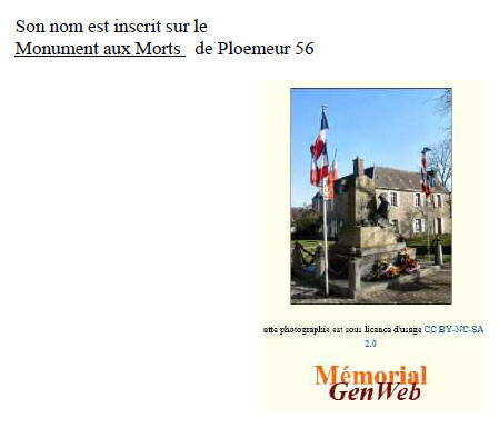à BREST (Finistère) - Décédé le 19 mars 1917 - En mer - au sud de la