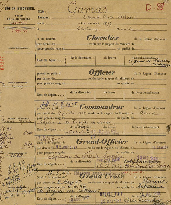Légion d'Honneur le 15 janvier 1947 avec la citation suivante :