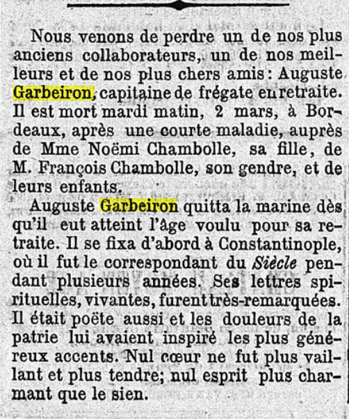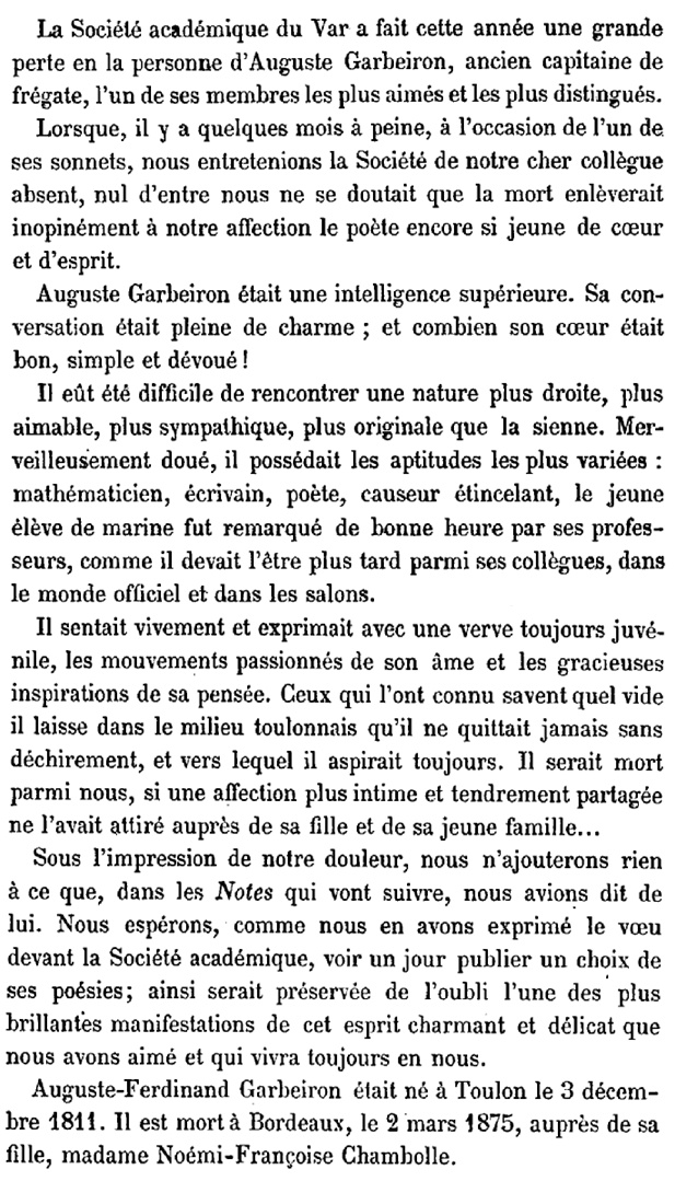 TOULON (Var) - Décédé le 2 mars 1875 à BORDEAUX (Gironde).