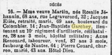 à ANTIGNY-la-VILLE (Côte-d'Or) - Décédé en avril 1904 à RENNES (Ille