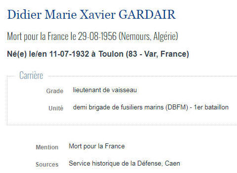 Décédé le 29 août 1956 à NEMOURS (Algérie)