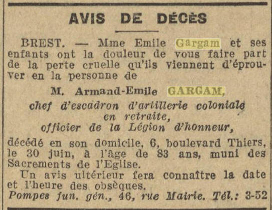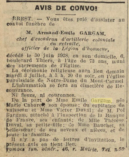 Né le 2 janvier 1855 à BREST (Finistère) - Décédé le 30 juin 1928 à