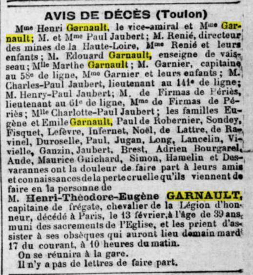 GARNAULT (1866-1910), lieutenant de vaisseau.