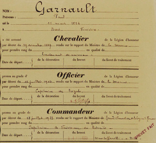 Aide de camp à l'État-Major du Préfet maritime du 4ème