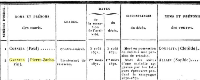 - Décédé le 1er mars 1872 à CHERBOURG (Manche)