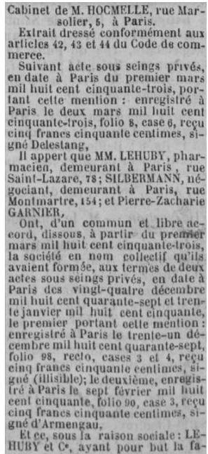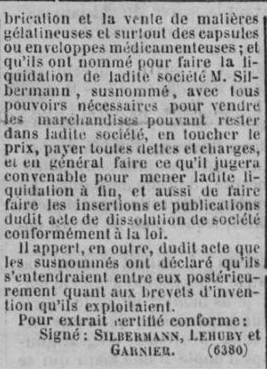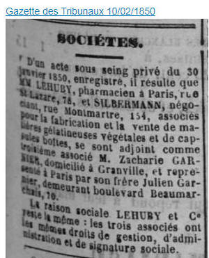 11 mai 1850). La société est dissoute dès 1853. Les gélules