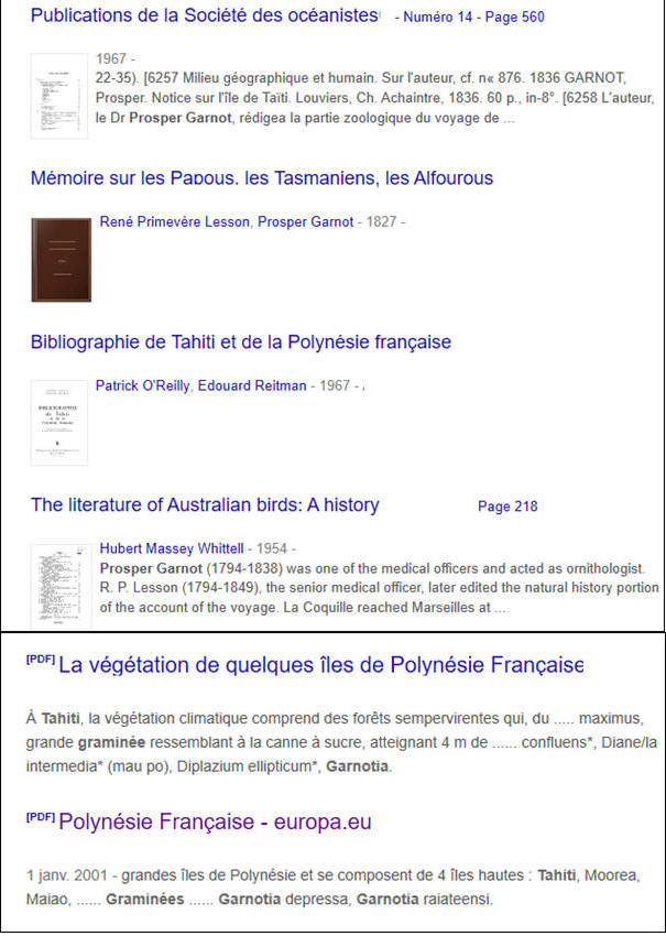 la famille des graminées, de Tahiti, porte son nom : garnotia.