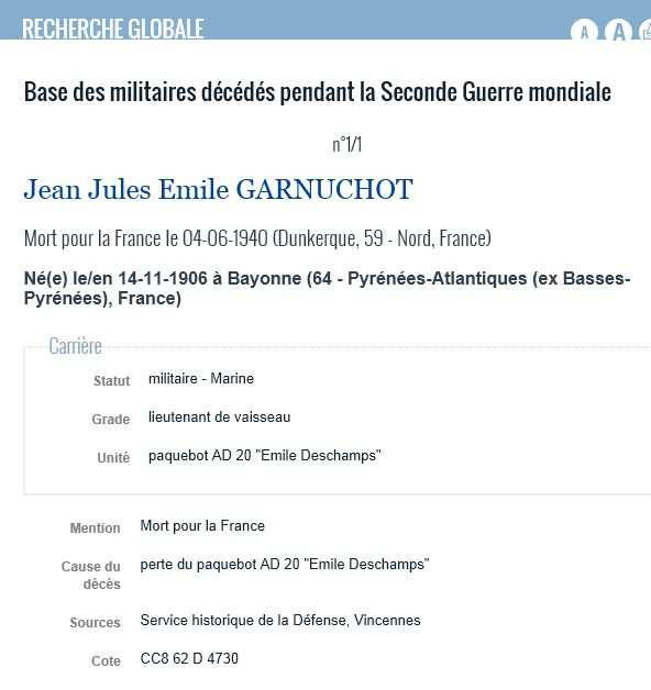 juin 1940, il est passager du dragueur auxiliaire "ÉMILE-DESCHAMPS"