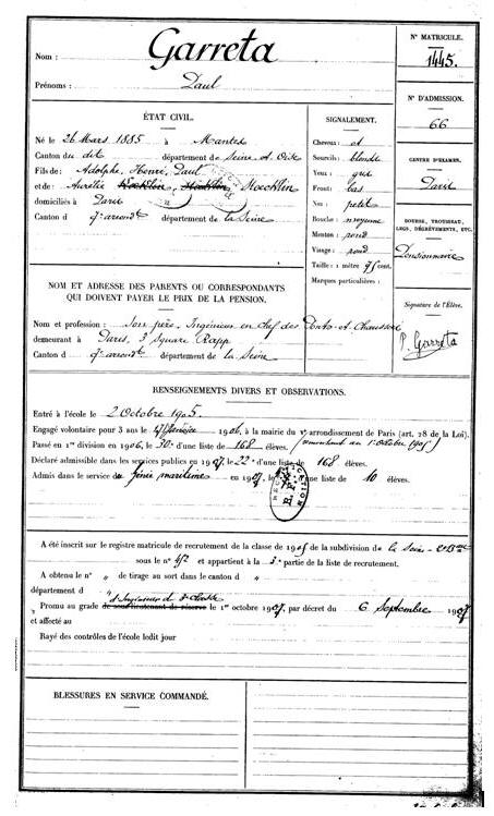 Élève de l'École polytechnique le 1er novembre 1905, opte pour le