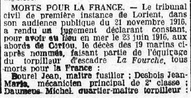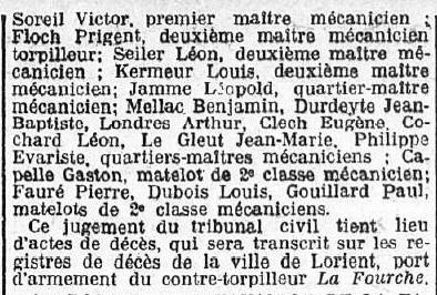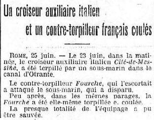 Quand la FOURCHE a été torpillée, a contribué puissamment à