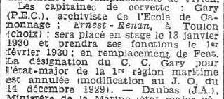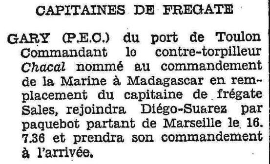 Commandant le contre-torpilleur "CHACAL" jusqu'au 6 juin 1936.
