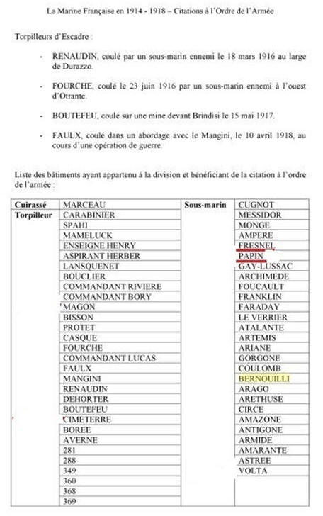 torpilleur "FOURCHE", cet Officier est cité à l'ordre de l'Armée