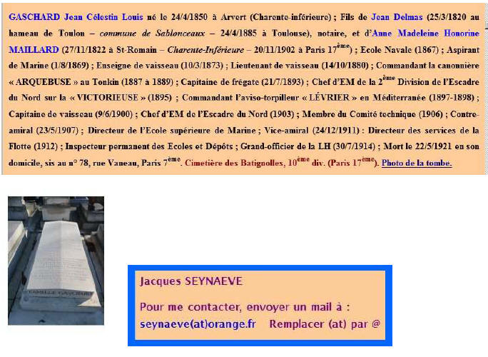 (Charente-Maritime) - Décédé le 22 mai 1921 à PARIS VIIème (Seine).