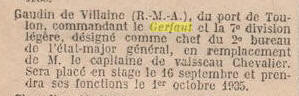 l'Etat-major général, en stage le 16 septembre 1935 et en fonction