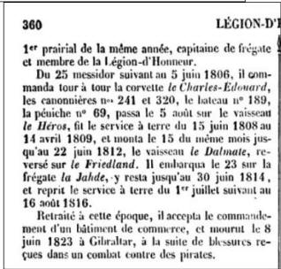 pirates où il est blessé et décède à Gibraltar à la suite de ses