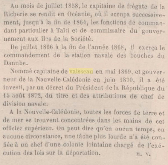 Commandant particulier à TAHITI, auprès du Gouverneur, Commissaire