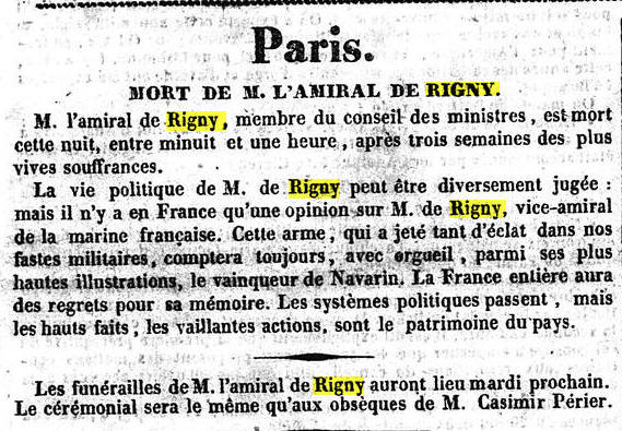 à laquelle il avait pris part, l’amiral de Rigny est créé comte
