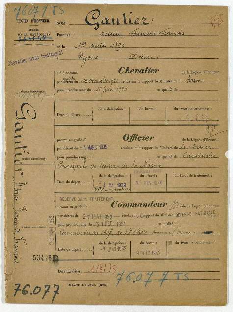 Commissaire de 1ère classe le 15 février 1921, étant Officier