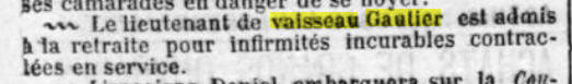 Enseigne de vaisseau le 5 octobre 1884; port CHERBOURG.