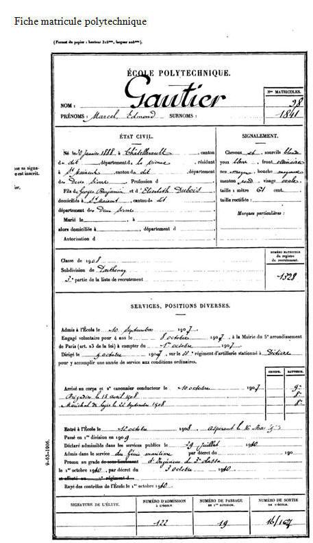 Au 1er janvier 1912, à PARIS, Élève de l'École d'application