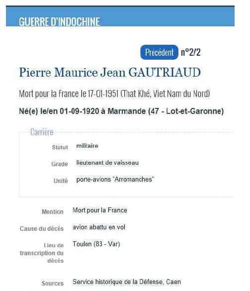 de vaisseau Gautriaud a reçu à titre posthume la citation suivante à