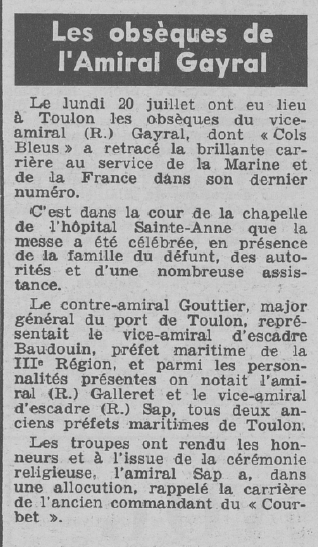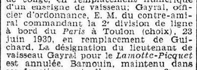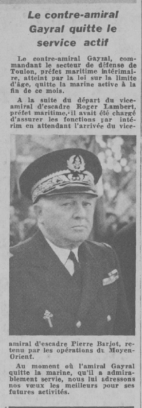 l'arrivée du capitaine de vaisseau Auboyneau qui était en Australie