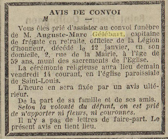 BREST (Finistère) - Décédé le 12 janvier 1910 à BREST (Finistère)
