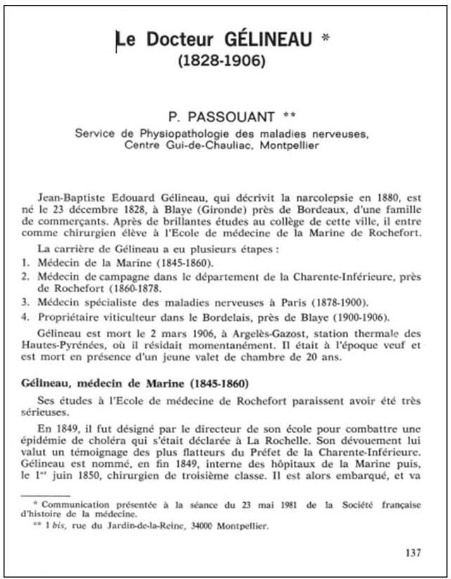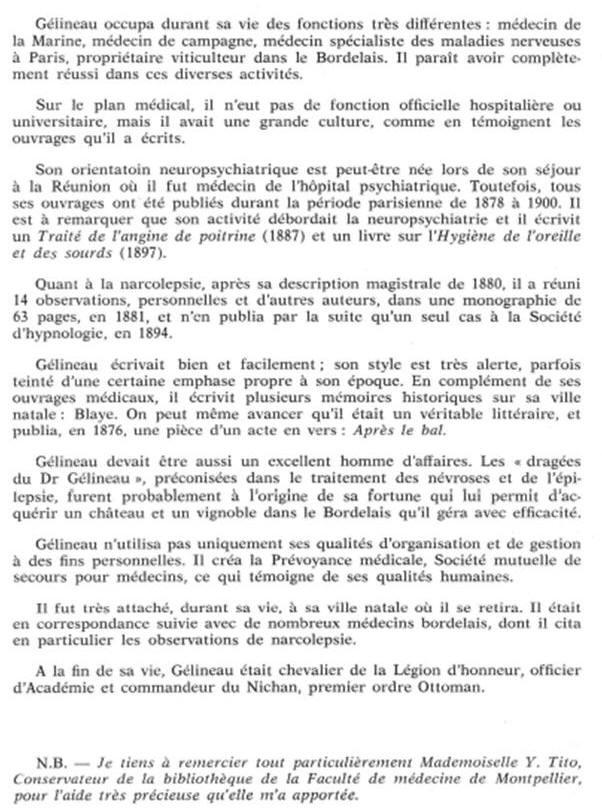 SOURCES : P.Passouant, le Dr Gelineau, communication présentée
