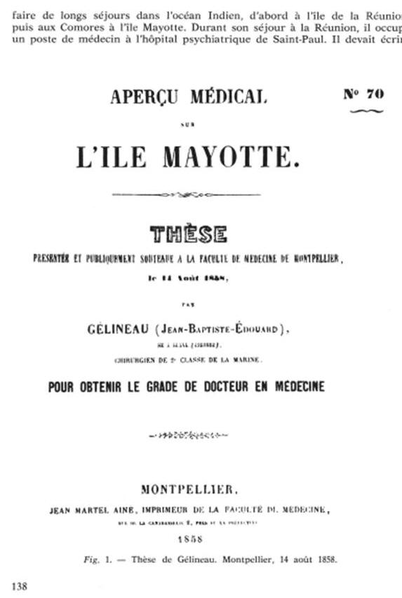 Juin 1851-Juin 1852 : il exerce à Mayotte.