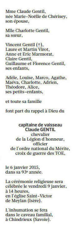 Né le 27 novembre 1922 à CHINDRIEUX (Savoie) - Décédé le 7 janvier 2015