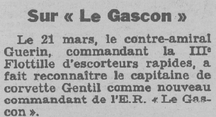 Enseigne de vaisseau de 1ère classe le 15 novembre 1946.