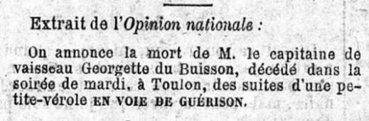 annonce la mort du capitaine de vaisseau Georgette du Buisson, aide