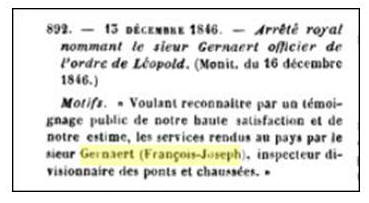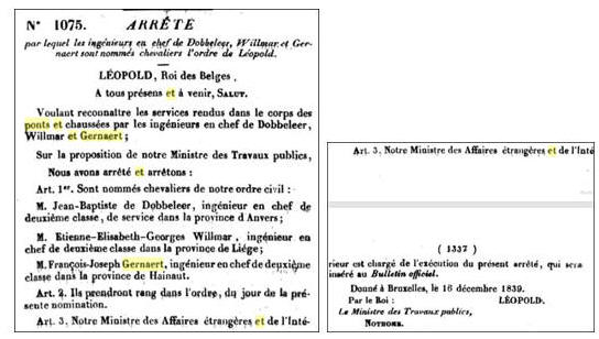 Chevalier de l’ordre civil belge le 16 décembre 1839