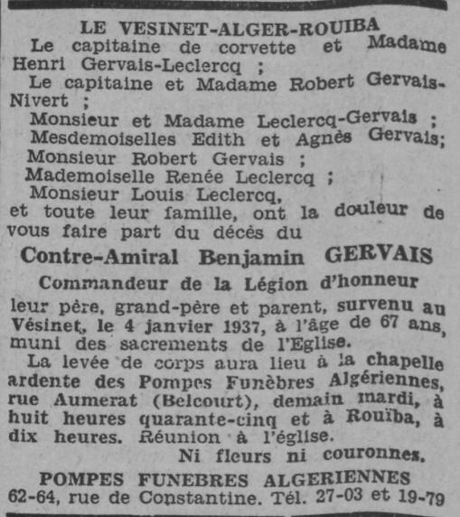 (Nord) - Décédé le 4 janvier 1937 au VESINET