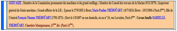 TREHOUART le 29 juillet 1852 à Brest, fille de l’amiral François